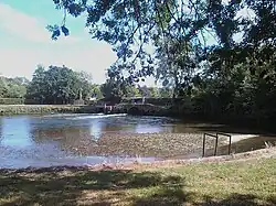 It has been suggested that the ponds are relics of the "2 fisheries" mentioned in the Domesday Book entry for the site.[47] The gardens and salmon pool were the subject of an oil painting by the neo-classical painter Adam Buck; the painting, measuring 35 inches by 57 inches, sold at auction at Sotheby's in London for £3,200 on 27 November 1974.[48] Some of Capability Brown's signature cedars of Lebanon still surround the house today.