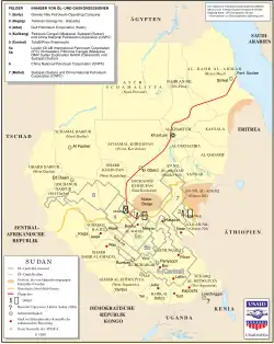 At the beginning of the 1980s, conflicts broke out again as the North gradually encroached on autonomy. In the mid-1970s, Chevron discovered oil deposits in Bentiu in southern Sudan, which aroused the interest of the North. Nimeiry soon decided to pipe the oil to Kosti in the north for processing instead of building a refinery locally.[9] Further tensions were caused by the large-scale Jonglei Canal project, which aimed to transfer water from the south to the water-scarce north. Critics in South Sudan saw this as an exploitation of the South for the benefit of the North and pointed to possible negative consequences for the environment and the livelihoods of the affected population, which had never been consulted on the project.[10]
