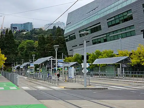 South Waterfront/South Moody, formerly South Waterfront/Southwest Moody, is a combined light rail and bus station located at 698 Southwest Porter Street in the South Waterfront neighborhood of Portland, Oregon, at the west end of the Tilikum Crossing bridge.[1] It is serviced by the MAX Orange Line and TriMet buses. Portland Streetcar travels through it but does not service it.