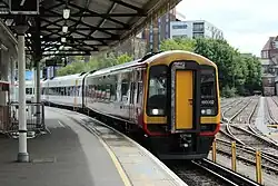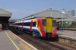 South West Trains operated a fleet of Class 455 metro-style commuter trains on services from London Waterloo to Shepperton, Hampton Court, Woking, Guildford, Dorking and Chessington, as well as services on the Kingston and Hounslow loops and occasionally on Windsor line services. These were built for British Rail.[35]