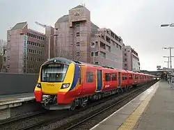 All 24 Class 456 two-car EMUs were transferred from Southern to SWT, with the first units entering SWT service on 23 March 2014.[37] These early 1990s-built units are compatible with the existing Class 455 fleet and are coupled with these to form ten-car trains, increasing capacity on some local services in and out of Waterloo.[38]
