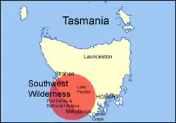 The South West Wilderness of Tasmania, Australia is a remote and inaccessible region of South West Tasmania containing unspoilt scenery, rugged peaks, wild rivers, unique flora and fauna, and a long and rugged coastline. Parts of the wilderness are more than 50 km from the nearest road, so the only access to the area is by foot, air or sea.