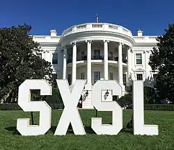 ![]() White House with SXSL sign in foreground, part of the South by South Lawn festival | |