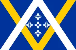 The flag of the association is registered with the South African Bureau of Heraldry (Certificate Number 2362 issued on 4 October 1991) and is described as follows: A rectangular blue flag, proportion 3:2; bearing a gold chevron inverted, the tip couped, and in the centre five four-pointed stars, also white, conjoined in cross. Both the base and the tip of each chevron are respectively equal to half of the width of the flag, while the outer point of the stars in fess touch the conjunction of the chevrons.