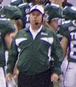 On December 10, 2011, UCLA athletics director Dan Guerrero announced the hiring of former Atlanta Falcons and Seattle Seahawks head coach, Jim L. Mora, as the Bruins' 16th head football coach.[74] Mora signed a three-year contract.[75] The results of the new regime came early, as UCLA landed a consensus No. 12 ranked recruiting class in 2012 after having a class ranked in the high 40s at Neuheisel's departure.[76][77] In Mora's first season, the Bruins finished 9–5 capped with a loss in the 2012 Holiday Bowl.[78]
