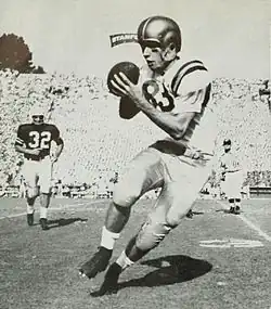 Bruin RB Johnny Hermann catching a pass in a 1955 game against Oregon State