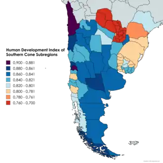 The Southern Cone is the second subregion with the highest Human Development Index and standard of living in the Americas, after Northern America.[2][3]