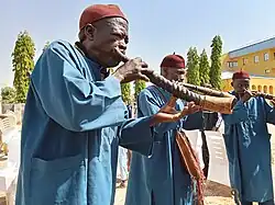 Around the Jos Plateau in the northwestern flank of Kwararafa, Achi (2005:378) mentioned that the itinerary settlement of Zangon Katab (or Katab) was established circa AD 1650 for the itinerant Hausa and Borno traders by the Atyap people, and became important in the region.[33] This settlement was said to have been consolidated by c. 1750.[34] The earliest Muslim settlement in Zangon Katab was called Angwan Tudu build around a place known as the Mabatado (or Mabarado, derogatorily Barawa Dawa by the Hausa) which served as the meeting place of the Atyap elders and center of Atyap festivities, occupied by Mele and his countrymen from Borno who were into long-distance or caravan trade and Islamic teaching. The land was granted to the settlers by the Atyap with certain terms attached. Hausa settlers from Kauru soon came and settled at Dorgozo. They, too, were traders. The settlers had a market chief who collected tributes from the traders to compensate the Atyap landlords. Later in the late 19th century, a Fulani ward was created in the Zangon Katab market due to the raids of Ningi in the Atyap area.[35] Baba argued that the alliance between the Fulani of Zangon Katab, the Muslim groups of Kauru, and Zazzau (or Zaria) against the Atyap had only resulted to the Atyap's hostility against their settlers, and should not be mistaken for control of the Atyap by the former, as the British made it seem.[36]