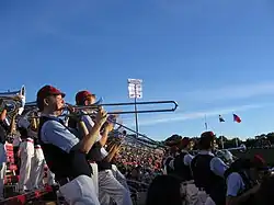 The tradition of playing a concert from the stands at the end of a football game dates back to at least 1960 when the band went to Ohio State and played a forty-five-minute jazz concert after the game.[3] The Mustang Band always concludes their concert with a rendition of In a Shanty in Old Shanty Town and the SMU Alma Mater, Varsity.[6][24]