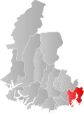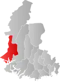 About 80% of the population of the two counties live along the coast, which has the warmest climate in Norway as well as offering quick access to the rich fishing grounds and maritime routes of the Skagerrak.[2] In Southern Norway there are also a number of less populated inland municipalities. The list of the municipalities in Southern Norway are: