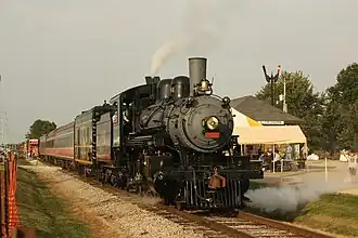 In 1995, a donor stepped forward with plans to return an operating steam locomotive to service at the museum, after considering several alternative steam locomotive candidates for restoration, it was decided to return No. 401 to operating condition.[1][6][4] No. 401's restoration officially began in 1995 by museum volunteers, with work taking fifteen years to complete, included replacing the boiler and tender, the engine would also be converted to burn oil instead of coal.[1][4] On September 10, 2010, No. 401 moved under steam for the first time in forty-six years, it would later operate its first excursion run for the annual Railroad Days event eight days later.[1][4] In 2020, No. 401 would be taken out of service for its Federal Railroad Administration (FRA) 1,472-day inspection and overhaul, it eventually returned service for the 2022 operating season.[7]