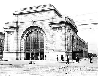 The Southern Railway Terminal, originally officially "New Orleans Terminal", in New Orleans was constructed by the Southern Railway in 1908 on the neutral ground of Basin Street at the intersection of Canal Street. The building was designed by Daniel Burnham, who was also the architect for the Union Station in Washington D.C. The station also served the New Orleans and Northeastern Railroad and the New Orleans Terminal Company.[1] It was the terminus for many of Southern's premier trains, most notably the Crescent. As such, it was the "front door" to New Orleans for many passengers from the Northeast for most of the first half of the 20th century. The Gulf Mobile & Ohio Little Rebel trains also operated into Terminal Station.