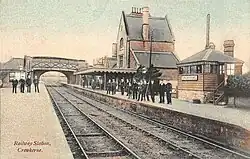 At Exeter, the LSWR had its own station, Queen Street, more conveniently situated than the St Davids station of the Bristol & Exeter Railway (B&ER), but its elevated location made onward extension into west Devon difficult. When it eventually did so, it descended by a steep and curved connection into the B&ER station, running a few miles northward on that line and then diverging to the west, to Crediton. The line onward led into several main line branches: to Barnstaple and Bideford (and later Ilfracombe); to Halwill and Holsworthy, with Halwill itself becoming a junction later; and to Plymouth, reached at first over part of the route of the rival broad gauge interest.[1][2][3]