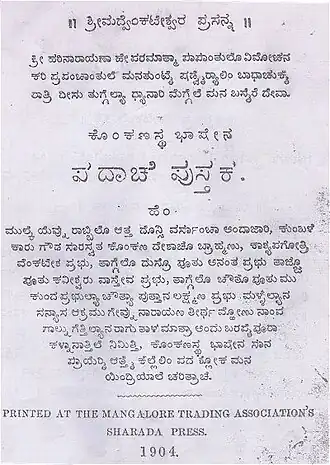 - ^ Prabhu, Vasudev (1904). padāñcẽ pustaka. Mangalore: Mangalore Trading Association's Sharada Press. pp. 4–23.