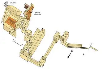 The complex shares many similarities with other complexes, such as the pyramid of Khendjer, the Northern Mazghuna pyramid, and to a lesser extent the pyramid of Ameny Qemau (mainly in having a second sarcophagus).[1][2][5]