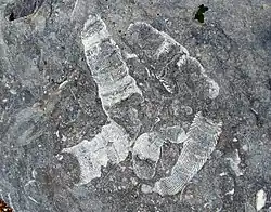 During the early Jurassic Period, a shallow sea spread northwards over the land. As the water deepened the higher areas became islands before finally being inundated. Water depth influenced the kinds of sediments that were deposited. Rocks formed close to the shore (Sutton Stone and Southerndown Beds) are strikingly different from the Blue Lias, which was deposited at the same time but farther offshore. Sutton Stone consists of massive, white, conglomeratic limestones with pebbles of black chert (silica) and Carboniferous Limestone. The overlying Southerndown Beds are blue/grey conglomeratic limestones and limy sandstones with thin shale partings. The Sutton Stone and Southerndown Beds pass laterally into, and are overlain by, the alternating blue-grey limestones and shales of the Blue Lias. The Jurassic rocks are generally rich in fossils. Shells of bivalves, and ammonites, fragments of crinoids, corals and pieces of carbonised fossil wood are quite common.