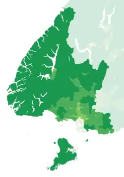 Southland District covers the majority of the land area of Southland Region, although the region also covers Gore District, Invercargill City and adjacent territorial waters. It has a land area of 29,574.53 square kilometres (11,419 sq mi), excluding inland waters such as Lake Te Anau, Lake Manapouri, and Lake Hauroko.