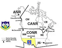 Reactivated as the Southwest Air Defense Sector (SWADS) on July 1, 1987 at March AFB, California, in the 26th Air Division; the sector received the 26th AD assets when it became inactive on September 30, 1990. SWADS was responsible for the atmospheric defense of approximately one-fourth of the Continental United States. Its eastern border was at the intersection of the 36th parallel north and 97th meridian west south to the Gulf of Mexico at the 28th parallel north. Its region extended west to include the region south of the 36th parallel north to the Pacific Ocean at the 122nd meridian west. It came under the Continental NORAD Region (CONR) Headquarters at Tyndall AFB, Florida. The Joint Surveillance System Sector Operations Control Center (SOCC) was at March AFB and Air Route Surveillance Radar (ARSR) data from several JSS radar stations and tethered aerostat radar balloons (e.g., Ground Equipment Facility J-31 near Los Angeles).