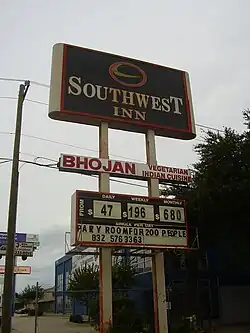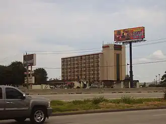 The Southwest Inn was located in the Greater Sharpstown district of Southwest Houston,[3][4] along a portion of Interstate 69 "Southwest Freeway".[5] The hotel was previously called the Roadrunner Inn. It was owned by Criterium Systems, Incorporated, a company in California.[6] An Indian resurant called "Bhojan" was attached to the hotel.[7] The restaurant described itself as a Gujarati-style thali vegetarian restaurant.[8] The hotel could hold up to 100 guests.[7] Some people used the hotel as a rooming house and stayed there for months at a time.[9]