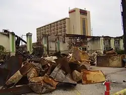 The hotel's roof had collapsed in the course of the fire.[10] Firefighters, believing that people were trapped inside, entered the building.[1] Two of the deceased were from Station 51 and two were from Station 68.[11] The fire also caused injuries to 14 additional firefighters; one fell into a coma and another required leg amputation.[10]