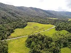 The northern expanse of Southwest Papua is dominated by the Tambrauw Mountains, spanning across Tambrauw Regency. Notably, Tambrauw has been designated as a Conservation Regency, with a remarkable 80 percent of its forests safeguarded within protected areas. Nestled amidst these mountains lies the expansive Kebar Valley, home to the indigenous Mpur people. The Kebar Valley is characterized by vast grasslands and a diverse array of wildlife including the bird-of-paradise, crowned pigeon and tree kangaroos.[13][41] Tambrauw Regency also has a wide coastline. This coastal area is also designated as a conservation area, namely the Jeen Womom Coastal Park. Jeen Womom has an area of 32 thousand hectares and its fauna include the large leatherback turtle.[42]