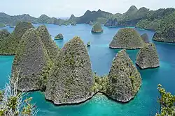 Southwest Papua is situated on the northwestern side of the region known as the Doberai Peninsula, or the Bird's Head Peninsula. The province's westernmost point encompasses the protected region of the Raja Ampat Islands, which boasts a rich variety of marine creatures, including coral reefs, leatherback sea turtles, manta rays, and whale sharks.[9][10] The province of Southwest Papua is centered around its capital, Sorong, which serves as an important hub for the region's oil and gas industry and a gateway to Papua. With modern port and airport facilities, Sorong is one of the most developed cities in Papua.[11] The province of Southwest Papua is home to various preserved ecosystems, including tropical rainforests and mountains. Tambrauw Regency, in particular, is a popular birdwatching destination and has declared its area as Conservation Regency in order to promote ecotourism.[12][13]