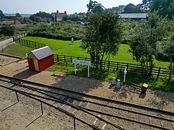 The route closely followed the River Blyth, with Halesworth and Southwold both on the north side, but the longest section, including the intermediate stations, was on the south side. Although the line closed in 1929, its track was still marked and identified on a 1933 Ordnance Survey map.[1] The line was lifted and the equipment was scrapped in 1941 to help with war efforts. Some track can still be found on the harbour branch and a surviving van is at the East Anglia Transport Museum. At the former Blythburgh station, the Coal Shed has now been restored and a short section of track has been laid next to a recreated platform along with two sidings. Replica rolling stock and a battery electric 3ft gauge locomotive 'Greenbat' are occasionally operated on open days.