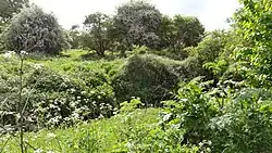 The site is mainly grassland, with hedgerows of elm scrub. These were mainly dominated by elm trees until they were destroyed by Dutch Elm Disease.[7]