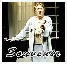 Judy Kaye plays "the one who gets to hilariously murder the music of Mozart, Verdi, Gounod and Brahms and to wear more of Tracy Christensen's elegant as well as spectacularly silly costumes than a whole ensemble in a more populated musical."[2] The play's title, Souvenir, comes from Jenkins insisting on recording "Queen of the Night" (Mozart), saying that when her voice is not as strong, the recording will make "a lovely souvenir."[2]