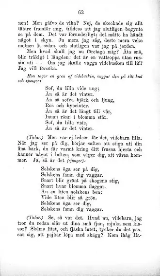 - ^ a b c d Zacharias Topelius, "Vinterlek" in Trollsländan (Helsinki: Theodor Sederholms boktryckeri, 1869) (9): pp. 65–69.