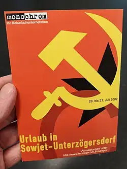 - In the early 2000s, notorious Austrian art group Monochrom decided to have a little fun with the spirit of Ostalgie (nostalgia for the Soviet era), the cultural whiplash from the sudden collapse of the Soviet Union a decade earlier. Monochrom founder Johannes Grenzfurthner, having been born well after the USSR ceded East Austria in 1955, realized he knew nothing about the Soviet occupation of his hometown, the tiny rural hamlet of Unterzoegersdorf, aside from the hyperbolic, implausibly demonic stories his grandmother had told him when he was young. He was curious about that era, but the older generation was unwilling to talk. (Considering the shame of Anschluss followed by ten years of Soviet annexation, could anyone blame them? As Grenzfurthner himself put it, "We Austrians are known for two things: Classical music and mass murder.") Leave the past behind, they said. No one wants to remember Soviet Unterzoegersdorf.[3]