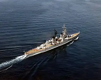 Sverdlov was the lead ship of the Sverdlov-class cruisers of the Soviet Navy. The ship was constructed at the Baltic Shipyard in Leningrad, Soviet Union and was launched on 5 July 1950. The cruiser was commissioned on 15 May 1952. The lead ship of the last class of gun cruisers of the Soviet Navy, Sverdlov spent most of her career making ceremonial port visits to allied and non-allied nations. From 1966 to 1972, the vessel was laid up out of service, only operating again before being laid up again in 1977. In 1989 the ship was disarmed and sold for scrap to an Indian company and broken up in 1993.