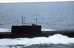 These decisions produced a design that had an underwater speed of 38 knots and was capable of carrying 10–12 missile launchers forward of the sail, but was larger than the specified displacement if fitted with two propeller shafts. The committee considered using a single shaft, but ultimately rejected it, preferring the redundancy of two reactors. It did delete the auxiliary diesel generator that earlier nuclear-powered submarines had been equipped with to compensate for using two shafts when it accepted the sketch design and authorized preliminary design work in February 1960. The final design was approved three months later.[5] To reduce the technical risk of many of the advanced components chosen, the navy modified five existing submarines to test various systems such as the P-70 Ametist (NATO reporting name: SS-N-7 Starbright), GRAU designation: 4K66; Russian: П-70 «Аметист» 'Amethyst') missiles, sonars and other electronics.[5][7]