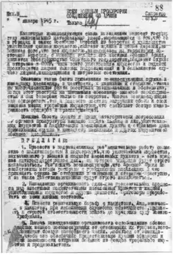 During the occupation, the Soviet government and army deported thousands of Romanian civilians from the occupied regions into "special settlements". According to a secret Soviet Ministry of Interior report dated December 1965, 46,000 people were deported from the Moldavian Soviet Socialist Republic for the period 1940−1953.[112] On June 12–13 alone, around 29,839 members of families of "counter-revolutionaries and nationalists" from the Moldavian SSR (as well as the Chernivtsi and Izmail oblasts of the Ukrainian SSR) were deported to Kazakhstan, Komi, Krasnoyarsk, Omsk Oblast and Novosibirsk.[113]