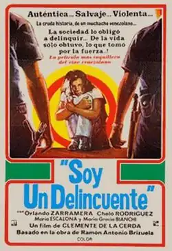 Soy un delincuente (English: I Am a Criminal) is a 1976 Venezuelan film by director Clemente de la Cerda, based on the autobiography of Ramón Antonio Brizuela.[1] The film was a blockbuster hit in Venezuela, surpassing even big American productions such as Jaws, and is considered one of the most important films in the movement called "Nuevo Cine Venezolano". Some critics suggest that this film is clearly influenced by Italian neorealism, introducing common elements such as the presence of non-professional actors and use of real streets as settings for scenes. The film won the Special Jury Prize at the Locarno International Film Festival in 1977.