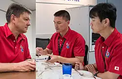 ![]() (l-r) Kononenko, Lindgren and Yui Soyuz programme (Crewed missions) | |
