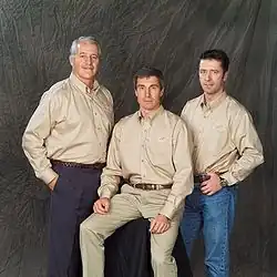 ![]() (l to r) Vittori, Krikalev, Phillips Soyuz programme (Crewed missions) | |