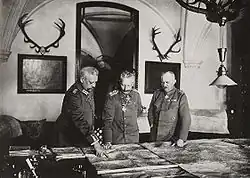 In addition to Wilhelm II, the conference brought together Chancellor Georg von Hertling, the Undersecretary of State at the Chancellery, Wilhelm von Radowitz, the Imperial Minister for the Navy, Eduard von Capelle, and the representative of the Federal Foreign Office with the OHL, Friedrich Rosenberg.[23]