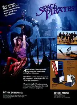 Space Pirates is a live-action LaserDisc video game, released by American Laser Games for the arcade in 1992 and ported to MS-DOS computers in 1994 and the 3DO Interactive Multiplayer in 1995. The game was re-released for several platforms by Digital Leisure around 2003, with updated sound and video, among other American Laser Games titles.
