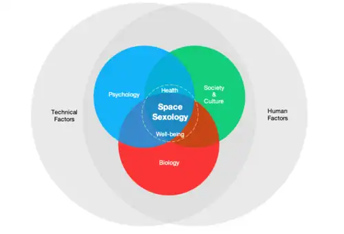 Space sexology has been defined as the "comprehensive scientific study of extraterrestrial intimacy and sexuality".[1][2][3] It aims to holistically understand intimacy and sexuality in space, including its risks, and potential benefits for the health and well-being of those who travel beyond our home planet.[1]