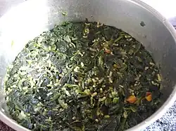 Spanakorizo (Greek: σπανακόρυζο, "spinach rice") is a Greek vegetarian dish of spinach and rice. A pilaf, it is described as a typical Greek country dish that may be eaten hot or cold.[1]