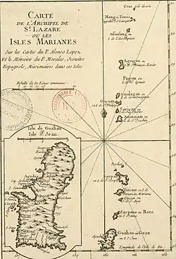The Spanish–Chamorro Wars, also known as the Chamorro Wars and the Spanish–Chamorro War, refer to the late seventeenth century unrest among the Chamorros of the Mariana Islands in the western Pacific Ocean against the colonial effort of Habsburg Spain. The series of fighting erupted due to Spanish colonization, force-conversion of the Chamorro to Christianity by Spanish colonizers, and a brutal genocide conducted by the Spanish and their allies against the indigenous Chamorro people.[1][2] Anger at proselytizing by the first permanent mission to Guam, which was led by Diego Luis de San Vitores and his team, including Pedro Calungsod, and a series of cultural misunderstandings led to increasing unrest on Guam and a Chamorro siege of the Hagåtña presidio incited by maga'låhi (Chief) Hurao in 1670. Maga'låhi Matå'pang killed San Vitores in 1672, resulting in a campaign of Spanish reprisal burnings of villages through 1676. Local anger at the attacks against villages resulted in another open rebellion led by Agualin and a second siege of Hagåtña. Governor Juan Antonio de Salas conducted a counter-insurgency campaign that successfully created a system of collaboration in which Guamanians turned in rebels and murderers and transferred most of the people from about 180 villages to seven towns, a policy known as reducción. By the early 1680s, Guam was largely "reduced," or pacified.