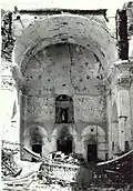 Fairly well armed revolutionaries managed to take the whole province of Asturias, murdering numerous policemen, clergymen and civilians, destroying religious buildings including churches, convents and part of the university at Oviedo.[75] Rebels in the occupied areas proclaimed revolution for the workers and abolished the existing currency.[76] The uprising was crushed in two weeks by the Spanish Navy and the Spanish Republican Army, the latter using mainly Moorish colonial troops from Spanish Morocco.[77] Azaña was in Barcelona that day, and the Lerroux-CEDA government tried to implicate him. He was arrested and charged with complicity. In fact, Azaña had no connection with the uprising and was released from prison in January 1935.[78]