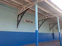 Spanish Town sign on southern platform, May 2021