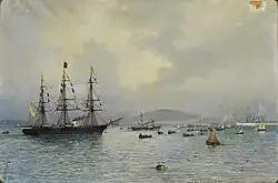 Navas de Tolosa and the rest of Méndez Núñez's squadron arrived at the Rio de la Plata (River Plate) on 12 December 1866.[2] After the Ministry of the Navy received word that a combined Chilean Navy-Peruvian Navy squadron planned to cross into the Atlantic Ocean, Méndez Núñez received orders to return to Rio de Janeiro.[2] On 24 December 1866, the Ministry of the Navy ordered Méndez Núñez to move to Havana and prepare to defend the Antilles against attack.[2] These orders reached Méndez Núñez on 1 February 1867.[2] On 20 March 1867 Navas de Tolosa, Almansa, and Concepción arrived at Santiago de Cuba on the southeastern coast of Cuba under Méndez Núñez's overall command.[3] The ships then proceeded to Havana, which they reached on 26 March 1867.[3] Navas de Tolosa captured the Peruvian Navy steamer Rayo off Cartagena, Colombia, on 25 April 1867.[2] The squadron also visited Saint Thomas in the Danish West Indies during its Caribbean deployment.[4]