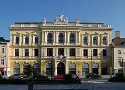 The first Austrian savings bank, as its name indicates, was the Erste österreichische Spar-Casse, which opened on 4 October 1819 in Vienna.[5] Other savings banks were founded in subsequent years on an associative basis (German: Vereinssparkassen) by individuals such as aristocrats, clergy, senior civil servants, or doctors and pharmacists. As a counterweight to private banks, the savings banks were intended as purpose-driven institutions against the impoverishment of the population and as instruments for the accumulation of wealth by the working classes. The Savings Bank Regulation (German: Sparkassen-Regulativ) of 1844 established a framework of government oversight of the savings banks, with a permissive system for Vereinssparkassen and for the newly defined category of municipal savings banks (German: Gemeindesparkassen),[7]: 39 the first one of which was born in 1853. A boom in new savings banks began in 1866, with the number increasing from 26 to 210 in 1910. The model statute of 1872 abolished the previous restriction of savings banks services to "less well-off classes" and the degressive interest rate (the interest rate fell with the level of deposits); they now became "financial institutions of a humanitarian nature" (German: Geldanstalten humanitären Charakters) that could do business with all classes of the population.[8] Savings banks were created in other parts of the Habsburg Monarchy, such as the Laibacher Sparkasse in today's Ljubljana (est. 1820),[9] Cassa di Risparmio di Venezia (est. 1822), Cassa di Risparmio di Milano (est. 1823), Böhmische Sparkasse (est. 1823), First National Savings Bank of Pest (est. 1840), and First Croatian Savings Bank in Zagreb (est. 1846).