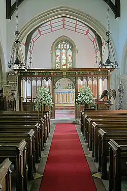 The oldest parts of the Church of England parish church of Saint Stephen in Sparsholt are also 12th-century. Early in the 13th century it was enlarged by adding a south aisle and arcade to the nave. The chancel was rebuilt in the 14th century. The chancel arch, west tower and some of the windows are 15th-century. The south doorway was added in 1631. The organ screen and lectern are also 17th-century. The church was restored in 1883 under the direction of the architect William Butterfield. It is a Grade II* listed building.[8]
