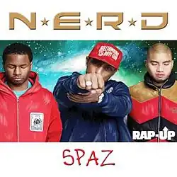 "Spaz" is a song by American rock and hip-hop band N.E.R.D. released as the second single from their third studio album Seeing Sounds. The song peaked at number six on the U.S. Billboard Bubbling Under Hot 100 Singles chart upon release in 2008. The group performed the song at the 2008 BET Hip Hop Awards, and were joined on stage by fellow American rappers Lil Wayne, Busta Rhymes, T-Pain, Swizz Beatz and Common (who had performed "Universal Mind Control" with Pharrell before the song).