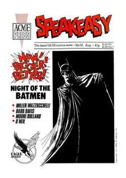 Speakeasy was a British magazine of news and criticism pertaining to comic books, comic strips and graphic novels. It published many interviews with both British and American comics creators.[1]