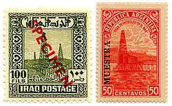 A specimen stamp is a postage stamp or postal stationery indicium sent to postmasters and postal administrations so that they are able to identify valid stamps and to avoid forgeries.[1] The usual method of invalidating the stamps is either overprinting in ink or perforating the word Specimen[2] across the stamp and where English is not the common language, the words Muestra (Spanish), Monster (Dutch), Muster (German) or Образец (Russian, 'Obrasetz') have been used instead.[3]